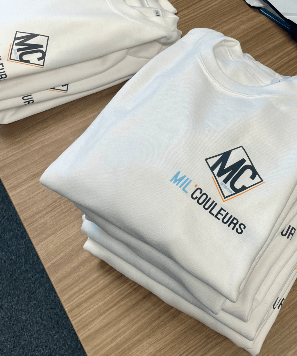 Création d'identité visuelle de supports imprimés de com' numérique de textiles & goodies à votre image.